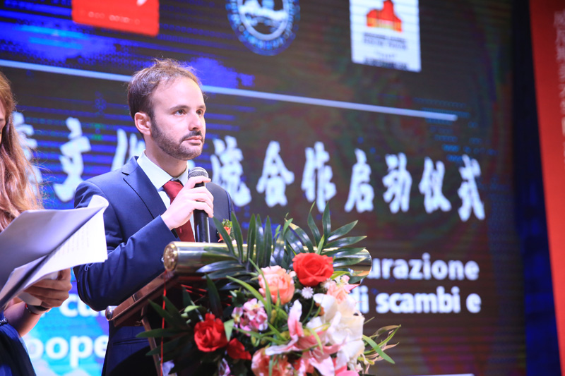 意大利罗伯特 菲奥艾先生对本次文化交流启动仪式致辞;意八启久文化发展有限公司常务副总 谯攀先生介绍意大利官方留学项目的介绍,接着贵阳为明国际学校校长崔延宁,帕多瓦大学语言中心、意大利宝拉国际语言文化协会常务理事杨多艳,意八启文化是发展有限公司总经理金显子木上台签约,并由中意文化传播大使罗伯特 菲奥艾向学校颁发“中意文化交流项目合作授权书”。