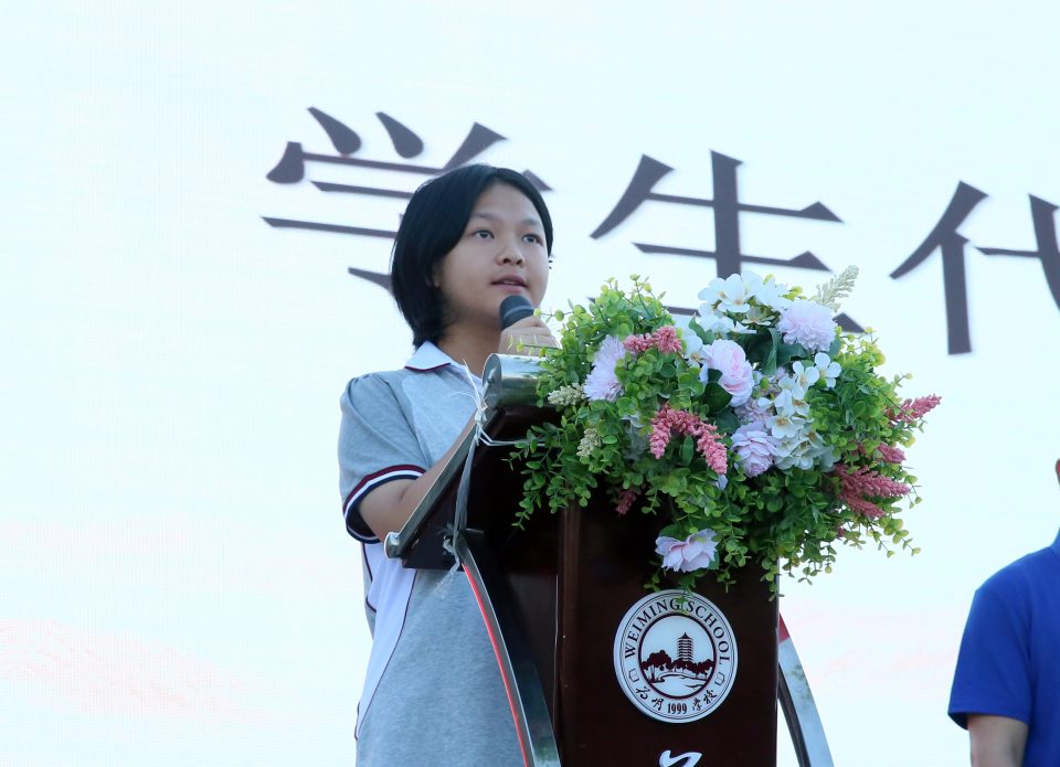 学生代表7年级2班杨诗言同学随后发言,她以少年视角分享了对新学期的展望与决心,言语间充满朝气与活力,展现出为明学子“挥斥方遒向远方”的青春风采,引发在场同学的强烈共鸣。
