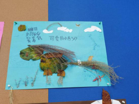 晚自习孩子们迫不及待的把今天所见所感写下来。然后再拿出白天捡到的树叶,开心的做起剪贴画,不得不佩服孩子们的想象力,大家做的都很有创意。