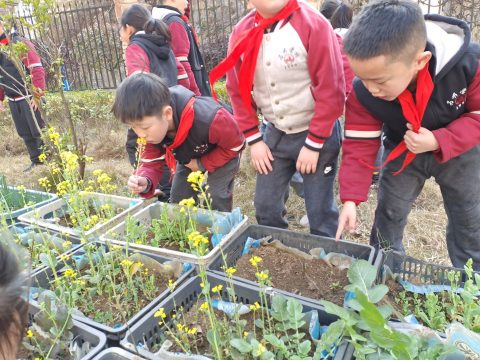 同学们看到迎春花能够带来春天的第一抹暖色,给大地的点缀点点黄花。于是就想要各种鲜活的植物在各自家绽放生命的色彩,同时为我们的生活提供它独有的芬芳。各种植物的种子外面有一层薄薄的壳,好像是一副铠甲,保护着种子。将种子埋在花盆的土里面,每天浇水,等一个星期种子利就孕育出新的生命,开始冒出细细的芽,等待子叶冒出土.....你看孩子们观察种子多么小心翼翼,手捧着种子就像呵护自己最心爱的玩具一样,爱意满满.....