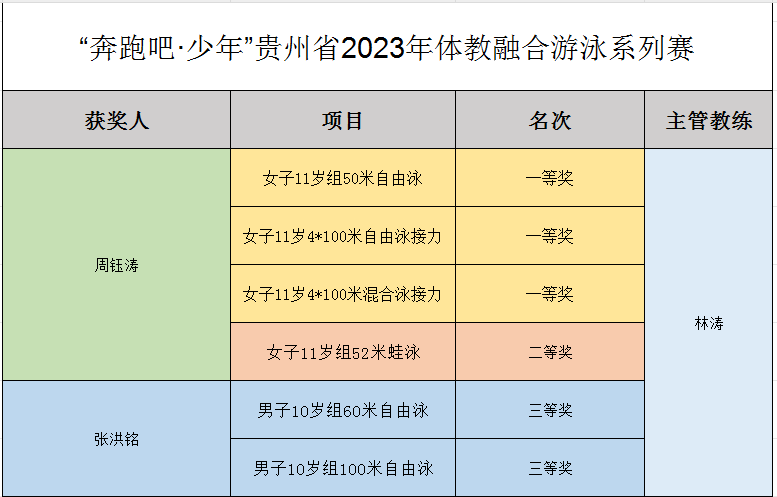 热烈祝贺贵阳为明学子在“奔跑吧●少年”贵州省2023年体教融合游泳系列赛中荣获贵州省一等奖